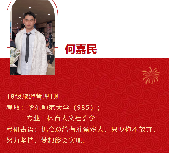 体育教学部积极响应集团和学校全方位培养华商人才的精神,服务好学生,体育教学部在一年前就在各代表队中物色热爱体育并具有一定潜质及考研意向的学生,为他们的择校、选专业以及专业课学习上提供指导。最终,来自18级旅游管理1班的何嘉明同学成功被华东师范大学录取为体育人文社会学学术型硕士,来自19级会计学5班的李煜同学成功被广州国产又爽又粗又猛录取为体育人文社会学学术型硕士。