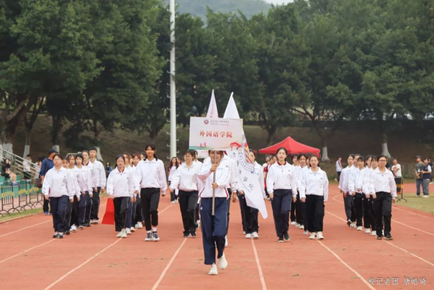 外国语学院秉持多方面发展的理念,培养了一大批高素质外语人才。瞧!他们那矫健的步伐、灿烂的微笑、嘹亮的口号向我们彰显了外国语学院独有的的风采。