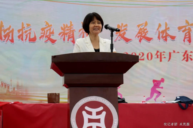 苏宁书记代表学校祝贺第十一届田径运动会在学校领导的关心与支持下,在运动会组委会的精心筹备下,在广大员工的辛勤付出下,取得圆满成功。并向在运动会上团结协作,顽强拼搏,取得优异成绩的广大运动员和各参赛单位表示最热烈的祝贺,向为本次运动会付出辛勤劳动的裁判员和工作人员表达了真挚的问候和衷心的感谢。十五载华商育人路,十一届青春齐飞扬本届运动会充分展示了全校广大师生积极进取、奋发向上、勇攀高峰的旺盛斗志,发扬了“相互理解、友谊、团结和公平竞争”的奥林匹克精神,是一次团结的盛会、友谊的盛会,成功的盛会。运动员们努力拼搏,只为创造一个不确定的奇迹。他们绷紧跟腱、爆发潜力,用自己健壮的体魄和永不放弃的精神,在体育场上书写了热血青年的力量。