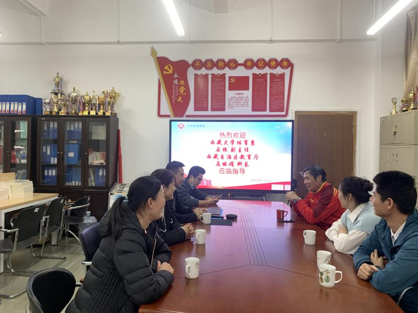 1月4日下午,西藏大学体育系石振副主任、西藏自治区教育厅马丽娟科长等一行莅临广州华商学院走访调研。广州华商学院体育教学部主任顾伟农教授及相关工作人员热情接待了来宾,并陪同参观广州华商学院校园场馆设施,介绍学校发展历史及学校体育工作开展情况。