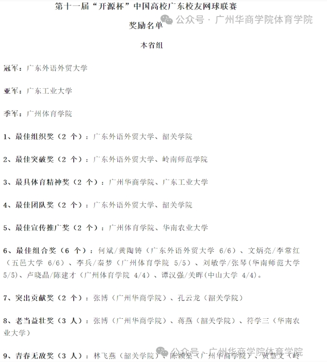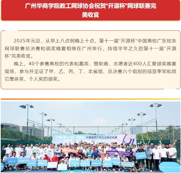 广州华商学院教工网球协会祝贺“开源杯”网球联赛完美收官
