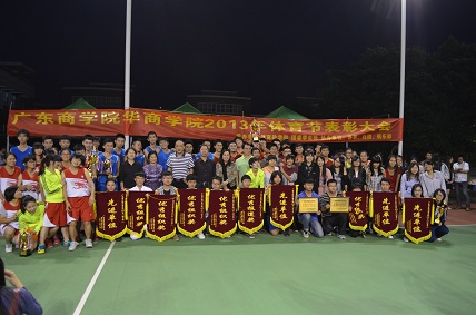 2013年10月29日下午五点三十分,广东财经大学华商学院2013年体育节闭幕式在篮球场顺利举行。出席本次闭幕式的嘉宾有学院党委苏宁书记、会计系马玉真主任、经济与金融系王德高主任以及工商管理系李建浔主任、体育教学部龚永平主任、徐振文副主任及其他老师。