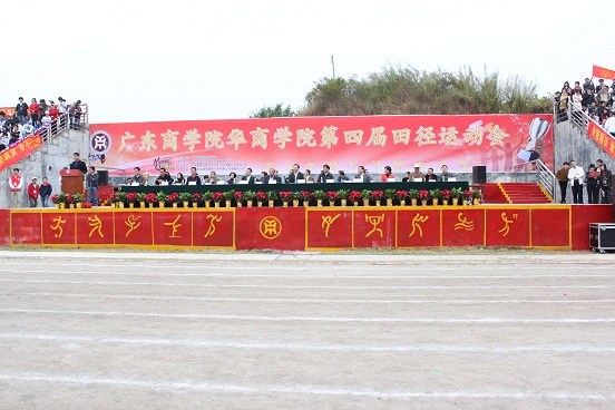 1210上午8:00,由广东商学院华商学院主办,华商学院体育教学部承办的我院2010年第四届田径运动会在学院田径场隆重开幕,学院领导廖榕就董事长、陈玉川院长、丘兆福副院长、黄虹书记、邓基泽副院长、支戈壁副院长、张方林副院长及各处室、系部负责人,全体运动员和师生代表参加了开幕式。开幕式由副院长张方林同志主持。英姿飒爽的国旗方阵首先入场,校旗方阵、鲜花和气球方阵、彩旗方阵紧随其后,由全院各系组成的方阵,教职工方阵和裁判员方阵依次入场,伴着激昂的进行曲,先后接受检阅,他们昂首阔步,意气风发,尽情挥洒激扬的青春活力,嘹亮的口号响彻云霄。