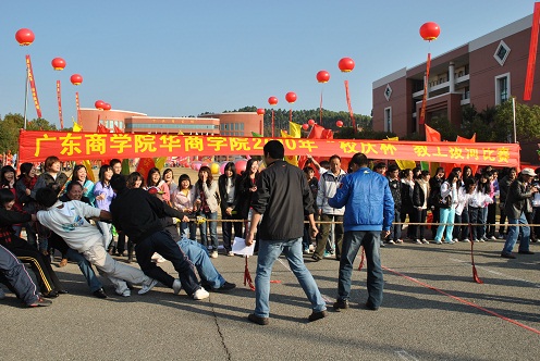 为了庆祝校庆五周年活动,及进一步推动华商学院的全民健身计划,促进学院教职工间的友谊与交流;增进凝聚力,增强教职工体质,丰富文体生活。由体育教学部承办的2010校庆杯冬季教职工拔河比赛,于1226日上午900在学院大门口举行,学院党委黄虹书记以及各系部主任、教师参加了本次活动。