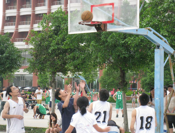 昨日风高气爽,经过大雨洗刷的操场,迎来了华商学院首届教职工男女 混合篮球赛。下午5: 40分,学校的篮球场上分别上演了四场教职工篮球争夺   赛。比赛正式开始,教职工在场上显现出熟练的技术,不失少年之勇。女老师也巾帼不让须眉,努力给队友制造机会。球场上的老师们个个可谓是“身手敏捷,出手不凡”,高节奏的快攻,一气呵成的单手上篮,高准确率的投篮,英姿飒爽,尽显教师风采,让观众们眼花缭乱,带动了全场的气氛,演绎了一场场精彩的篮球赛,让人回味无穷。对于平日总是站在讲台上授课的老师来说,今日他们以一种全新的姿态,展现了他们充满活力,拼搏的精神面貌,不禁让学生们眼前一亮,篮球场边时不时传来同学们阵阵的欢呼声,加油助威的呐喊声。