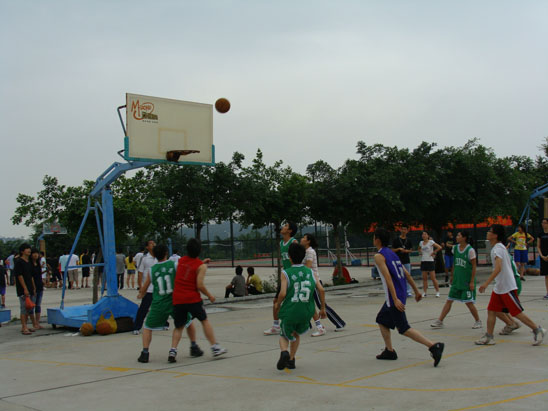 2009年6月9日星期二,虽然早上天公不作美,下了些,但是仍然阻挡不了华商学院教职工的一股激情。华商学院首届男女教职工混合篮球赛于下午5点45分在学院篮球场准时开赛。此次比赛,全院的各系、部门都组队参赛了,共有9支队伍参加本次比赛,参赛人数达110人之多。具体参赛队伍有:行政一队(院办、教务处处)、行政二队(学生处、招生办、图书馆)、行政三队(集团办、采购部、财务处、人事处)、行政四队(总务处、保卫处)、企业管理系、会计系、经济系、艺术系、联队(旅游管理系、外语系、文学系、思想政治部)。本次比赛是体育教学部承办的,所有体育老师为本次比赛的裁判员。学院领导、各系、部都很重视这次集体活动,学院主要领导、各系、部主任都亲临现场,观看了比赛,为队员加油助威。
