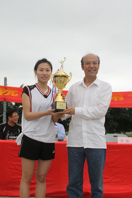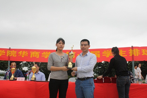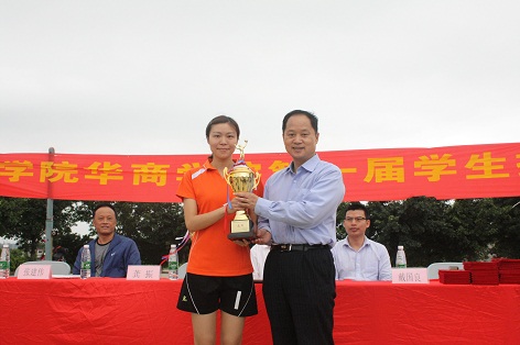 企业管理系戴副主任给获得季军企业管理系队颁奖