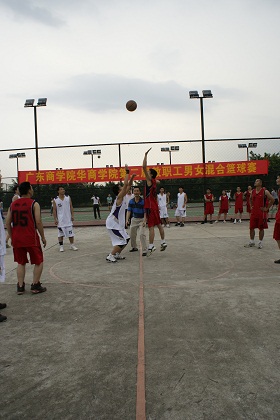 为了加强学院师生的交流,丰富校园文化生活,提高全院师生的运动热情和进行体育锻炼的积极性及进取精神,2010年5月18日,由广东商学院华商学院体育教育部组织的“华商学院第二届教职工男女混合篮球赛”在篮球场上拉开战幕。本届篮球赛共有会计系代表队、行政代表队、艺术系代表队、企业管理系代表队、旅游管理系代表队、经济系信息工程系联队等8支才赛队伍参加冠军的激烈角逐。华商学院院办周庆华主任、体育教育部张建伟主任以及学院各系师生出席观看了本届篮球赛。