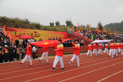 2011年12月9日上午八点,广东商学院华商学院第五届田径运动会开幕式在华商学院运动场隆重召开。广东省政协常委、华商教育集团董事长廖榕就博士,学院党委黄虹书记、学院丘兆福副院长、邓基泽副院长、支戈壁副院长、张方林副院长及各系部主任出席了开幕式。