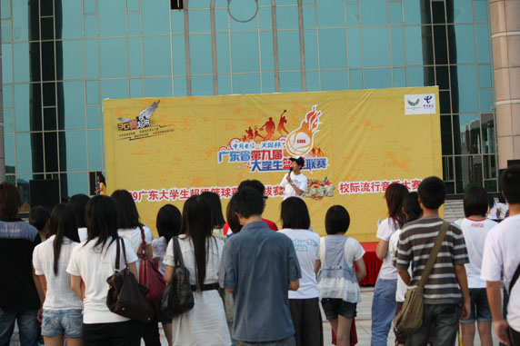 2009年9月25、26日,虽然入秋后的阳光还是那么的猛烈,但是阻挡不了华商学子的热情。在学院的图书馆门前,由省体育局主办的广东省第九届大学生篮球联赛的宣传活动在此举办,热爱运动的学子们在现场配合着音乐在欢快的舞动着,就像在篮球场上一样激情洒脱。本次的宣传活动,我院是全省所有独立院校中的唯一一个宣传点。