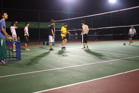 学院最近组建了男子排球队,准备参加广东省大学生排球比赛。现在排球队在体育教学部主任张建伟副教授的带领下,利用课余时间和晚上时间进行刻苦训练,积极备战本次比赛。